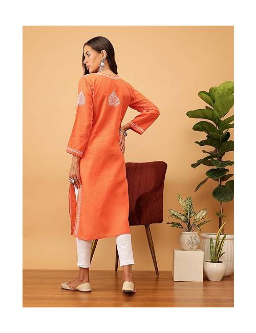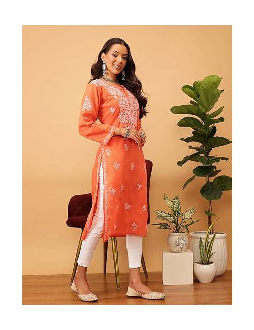 Hand Embroidered Chikankari Women’s Straight Cotton Kurta Kurtis
