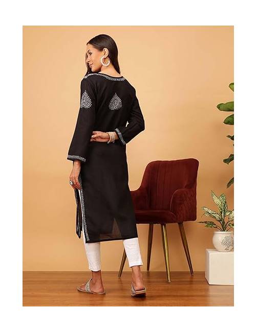 Hand Embroidered Chikankari Women’s Straight Cotton Kurta Kurtis
