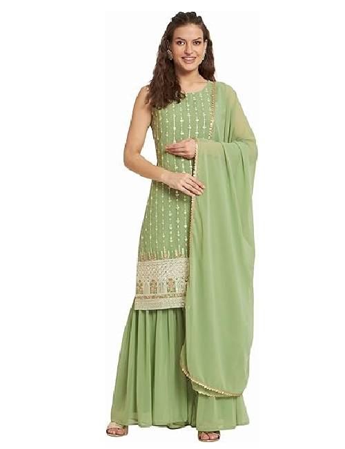 - Length : Kurta – 38 inch , Sharara – 42 Inch , Dupatta – 2.4 mtr and width 33 inch