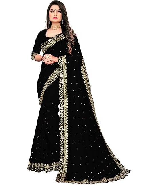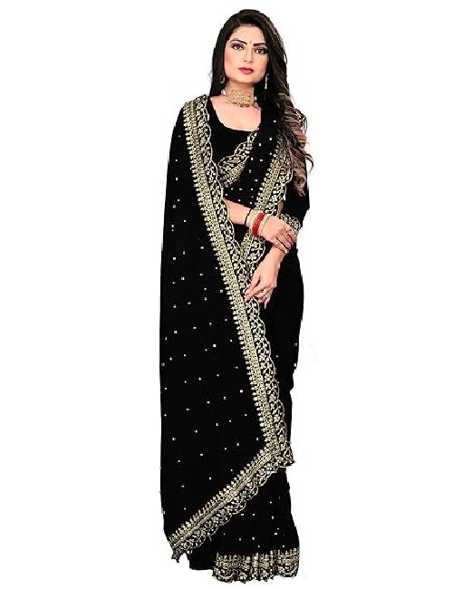 Saree for Women Georgette Embroidery Saree with Unstitched Blouse Piece