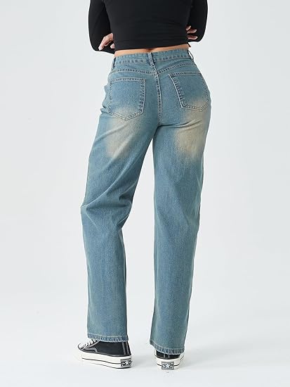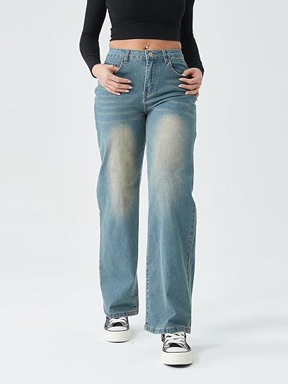 Straight Jeans for Women,High Waisted Wide Loose Stretchy