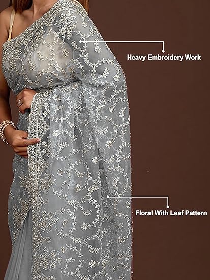 Women’s Net Embroidery Work Saree with Unstitch Blouse Piece