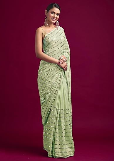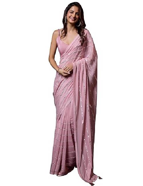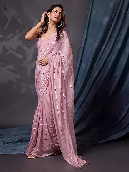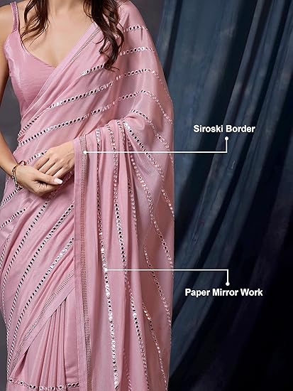 Women’s Silk Paper Mirror Work Embroidery Saree